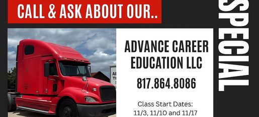 Advance Career Education in Mansfield offers hands-on CDL training, on-site testing, and job placement assistance — all Texas Workforce Commission approved.
